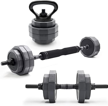 One set replaces multiple weights, making it ideal for small spaces.